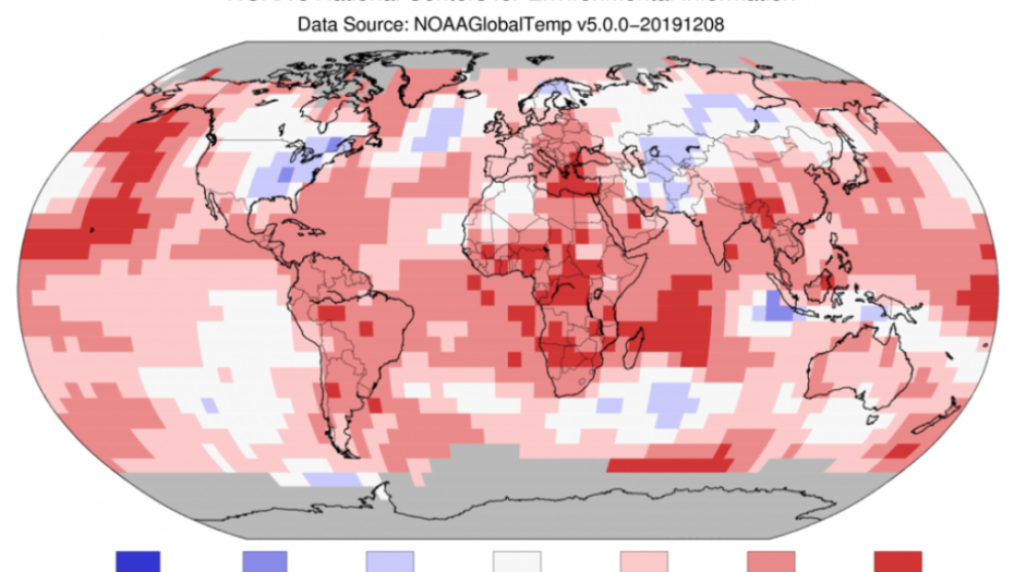 Prema NOAA, prosečna temperatura globusa je u novembru 2019. godine bila viša za 0,92 stepeni od prosečne temperature u 20. stoljeću od 12,9 stepeni, prenosi Hina.