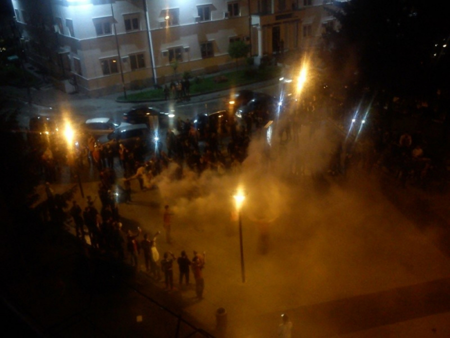 "Proslava" je počela vatrometom, a nastavljena raznim pokličima, urlicima, petardama, pucanjem, dimnim bombama, tako da se u jednom trenutku Trg Karađorđa Petrovića nije vide od dima.