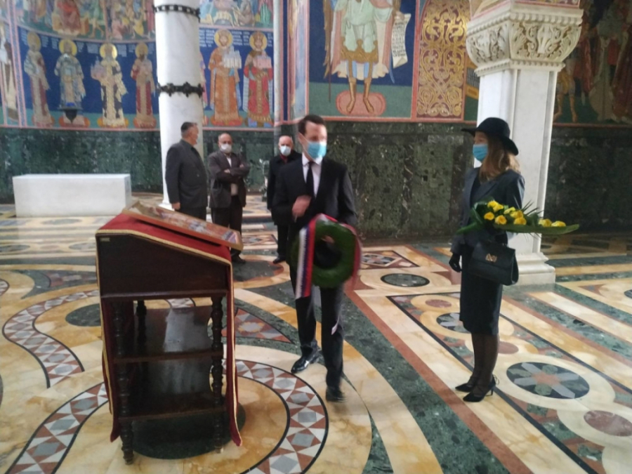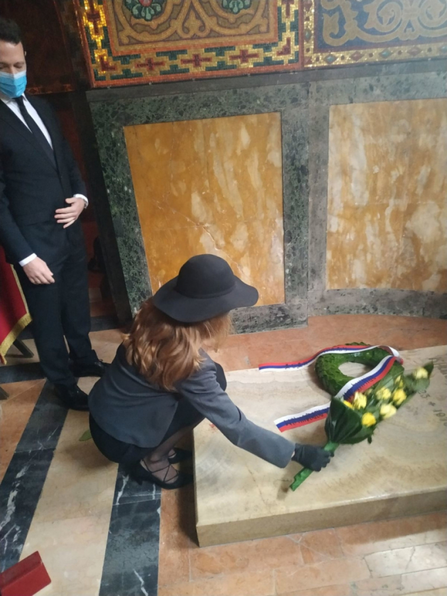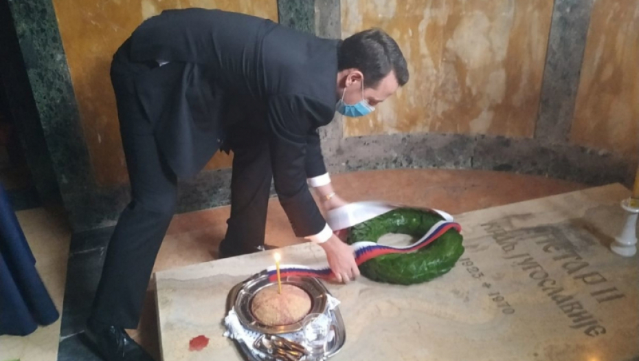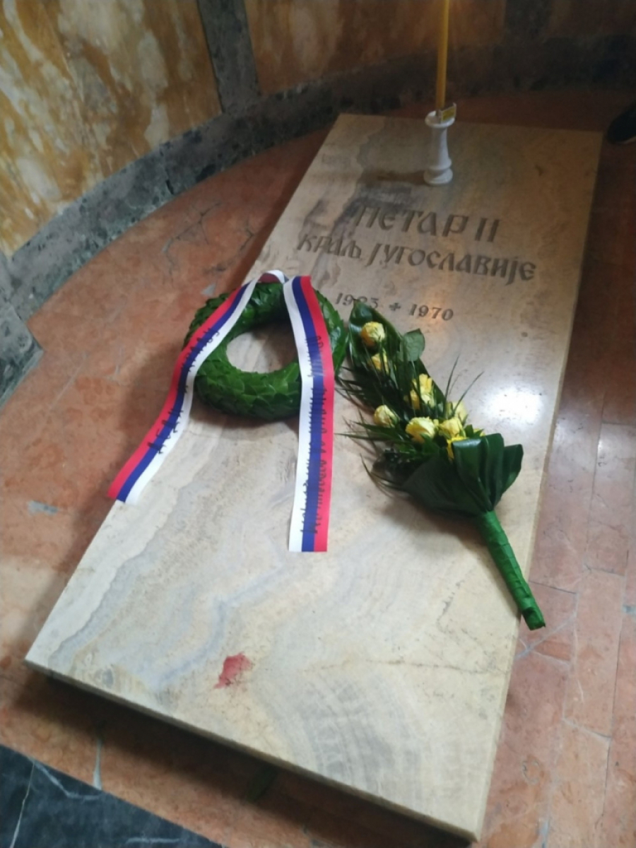Nakon odsluženog pomena, princ Filip položio je lovorov venac na grob svoga dede, Kralja Petra II, a princeza Danica buket žutih ruža koje su bile omiljeno cveće blaženopočivšeg Kralja.