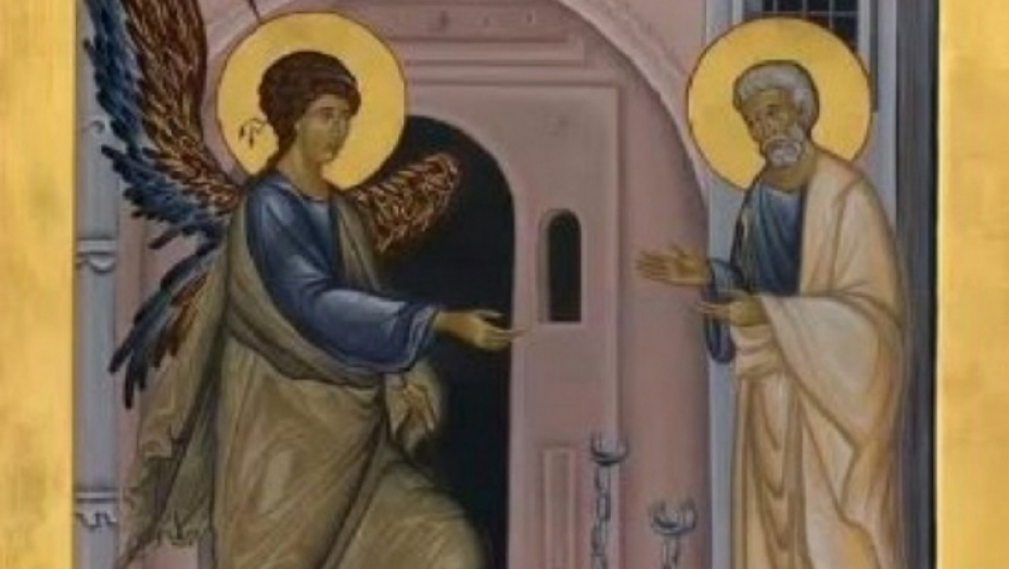 Petar je u tamnici spavao okovan između dvojice vojnika, a noć pred izvođenje na sud probudio ga je anđeo i rekao mu: "Ustani, obuj se i opaši se, pa hajde sa mnom".