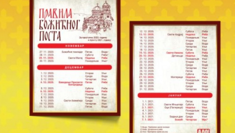 Ovo četrdesetodnevno uzdržavanje od hrane i pića, ali pre svega od ružnih misli i dela, svake godine traje od 28. novembra do 06. januara. U tom periodu život jednog hrišćanina prilagođava se pravilima koja njegovu dušu i telo treba da pripreme za veliki praznik i sjedinjenje sa Gospodom.