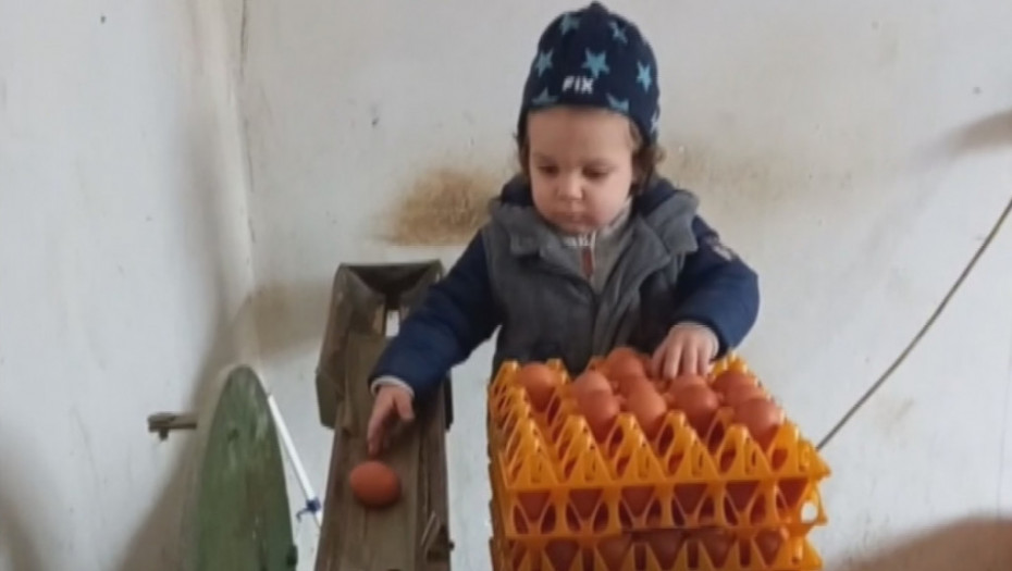 - Još pre nekoliko meseci primetili smo da mu je omiljena zabava. Sa dedom uvek ide u radionicu i tamo ih slaže, a ako nije tu onda jaja skuplja kod kokošaka. Mnogo je pažljiv i vrlo retko se desi da neko jaje razbije, tačno zna koliko jako treba da ih uzme i spusti dalje u mašinu - kaže za RINU Marko Urošević, otac malog Jakova.