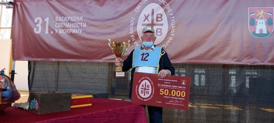 Atmosfera neizvesnosti u borbi tucanja uskršnjim jajima ključala je usportskoj hali u Mokrinu. Dok mu oči sijaju, četvorostruki šampion „Tucanijade“, Sava Terzić, strpljivo pozira sa peharom i pobedničkim jajetom, a na licu mu se vidi istinska sreća, jer nije mala stvar istovremeno doneti dve titule u porodicu.