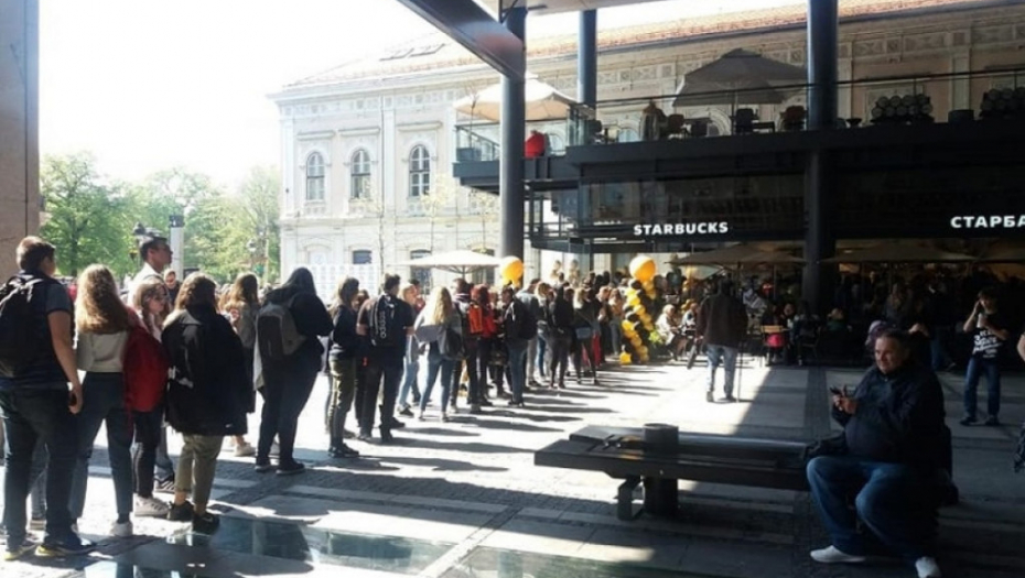Posle jučerašnjeg svečanog otvaranja prvog Starbaksa u Srbiji, prvi radni dan ovog kafea obeležile su neviđene gužve. Nekoliko desetina ljudi, mahom mladih, stalo je u red ispred TC "Rajićeva", gde se nalazi prvi Starbaks kafe u Beogradu.