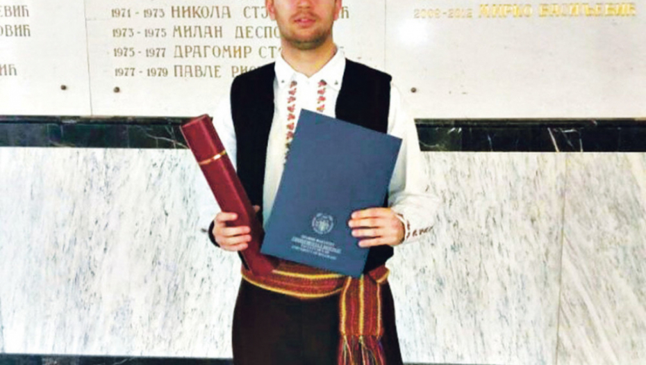 - Diplomirao sam na Pravnom fakultetu u roku s prosečnom ocenom 8,60. Na ideju sam došao tako što sam želeo da dam neki smisao diplomi koju primam. A to je upravo u oduživanju duga precima, koji su ovu nošnju nosili na saborima, svadbama, u ratovima, pa čak i na odbrani doktorata, kao što je to učinio profesor Radomir Lukić.