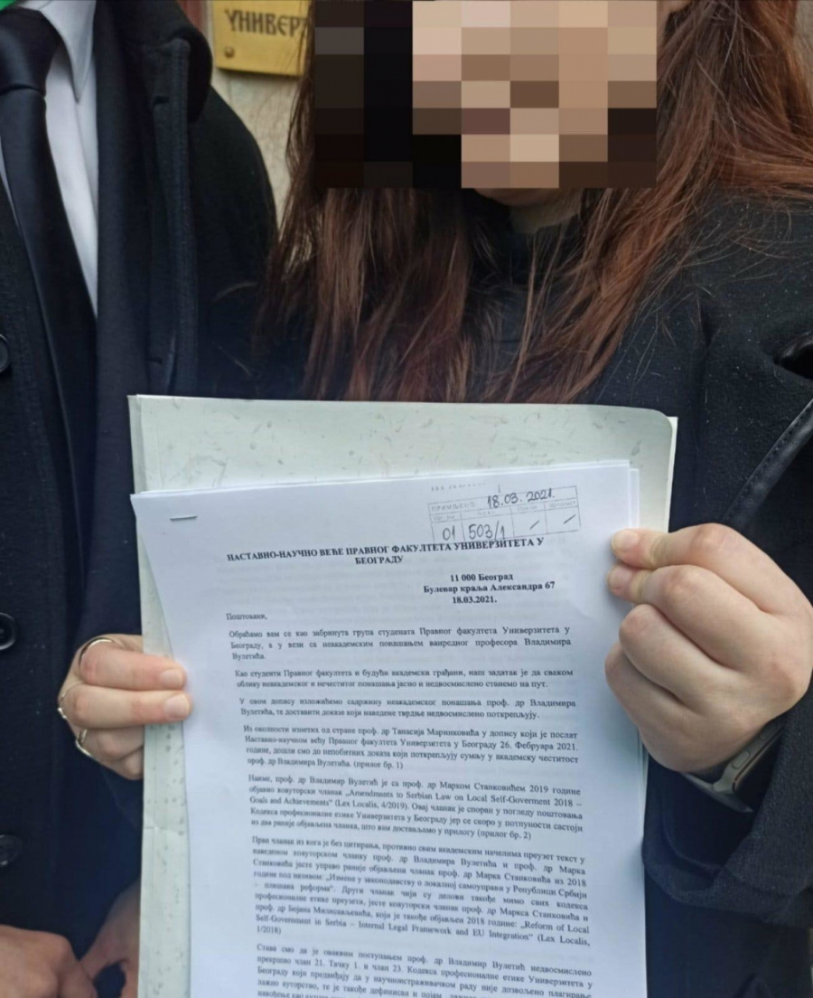 Dopis koji su sastavili studenti je pored Etičkoj komisiji Univerziteta u Beogradu dostavljen je i: