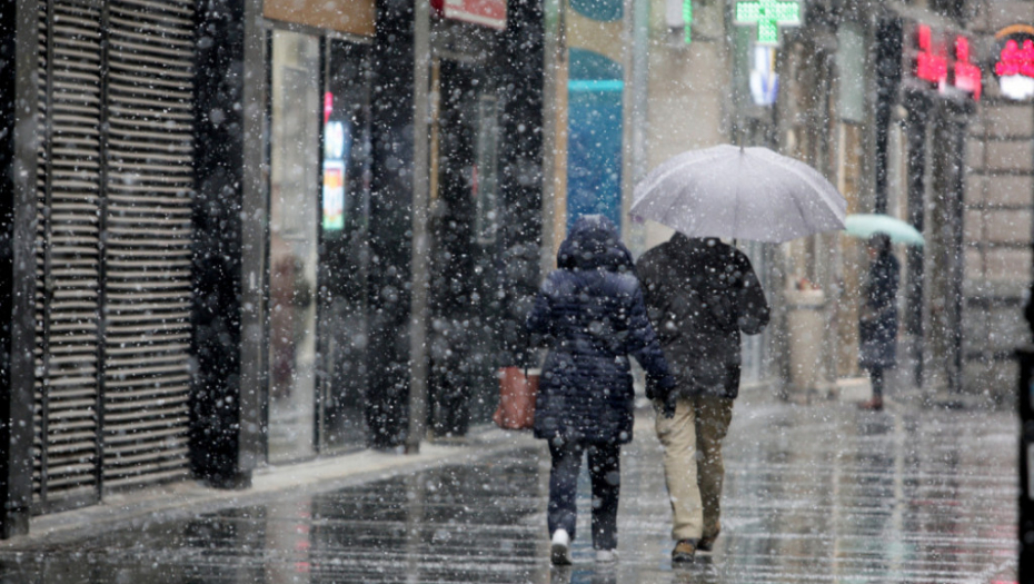 - Inače, tokom jučerašnjeg dana preko Srbije je usledio prodor hladnog fronta, koji je sa sobom doneo prodor ledene vazdušne mase, ali jak, na udare i olujni severozapadni vetar. Bilo je kiše i ona je uz osetniji pad temperature prešla u sneg, ali kako sneg nije dugo padao, nisu pale značajnije količine snega, jer je vrlo brzo došlo do prestanka padavina, pa i do delimičnog razvedravanja.