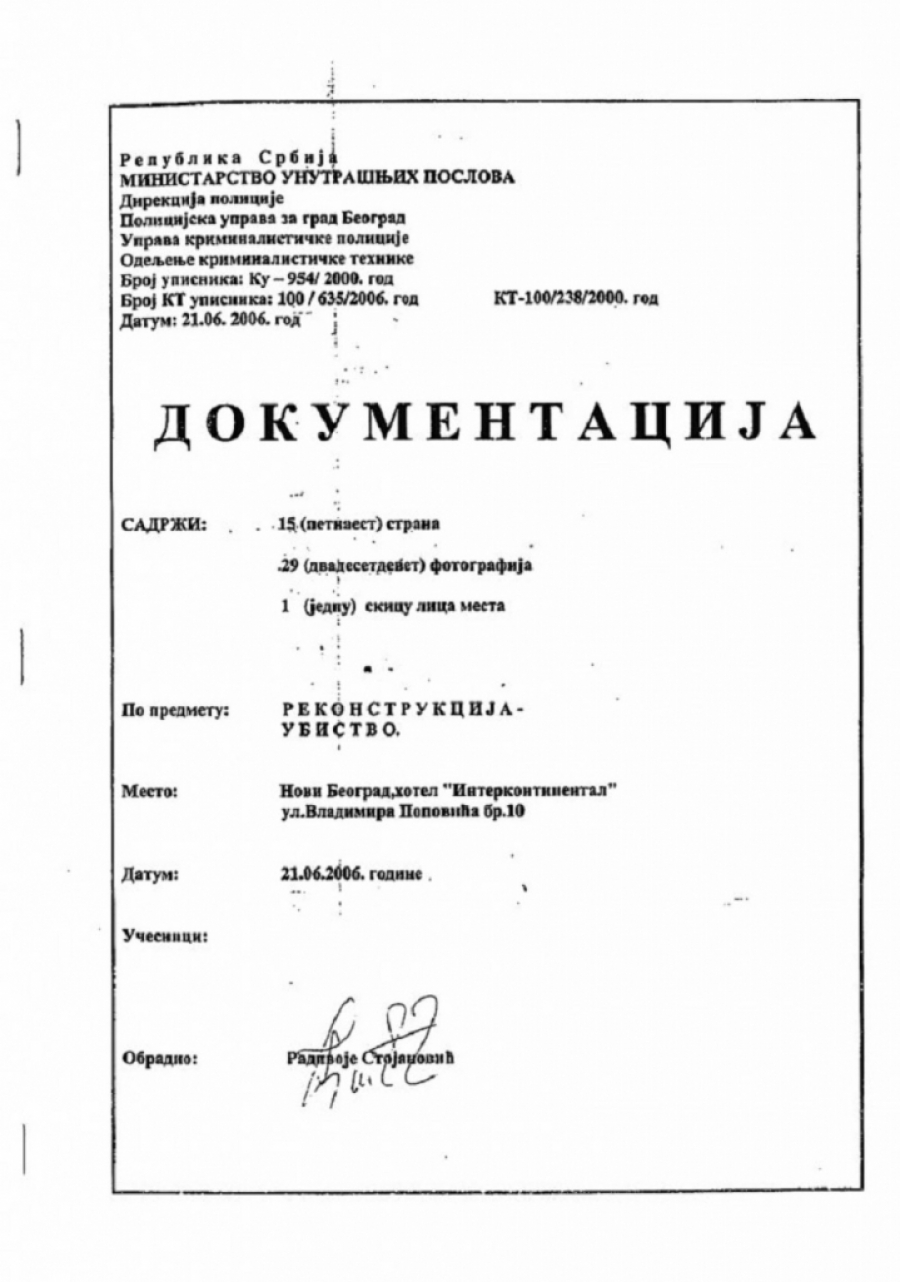 Srpski telegraf ekskluzivno je došao do dokumenata u vezi s ubistvom Željka Ražnatovića Arkana, nekadašnjeg komandanta Srpske dobrovoljačke garde, koji je 15. januara 2000. izrešetan u beogradskom hotelu "Interkontinental". U napadu su likvidirani i Arkanov telohranitelj Milenko Mandić Manda (44) i Dragan Garić (47).