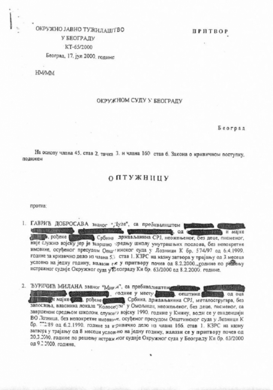 Ona je izjavila da je potom na metar, dva iza sebe videla mladića sportski obučenog, srednjeg rasta, koji je u podignutoj desnoj ruci držao pištolj. Ocokoljićeva nije poznavala tog momka, ali je policajcima rekla da nije reč o Branku Jevtoviću Jorgi.