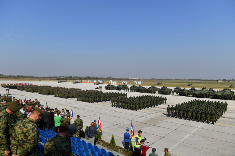 Na stajanci vojnog aerodroma smenjivali su se pešadijski i motorizovani ešelon, a zaglušujuća buka vazduhoplovnog ešelona prolamala se nad batajničkim nebom, saopštilo je Ministarstvo odbrane.