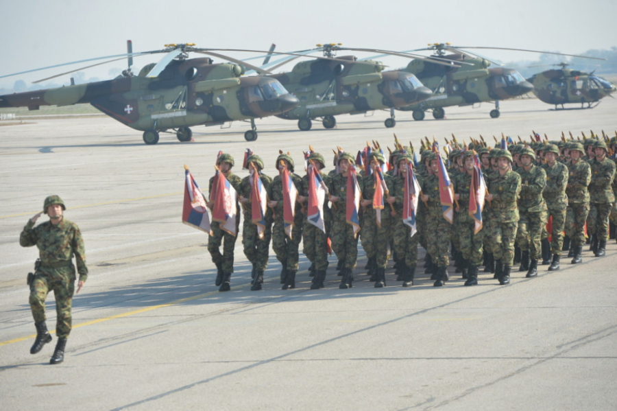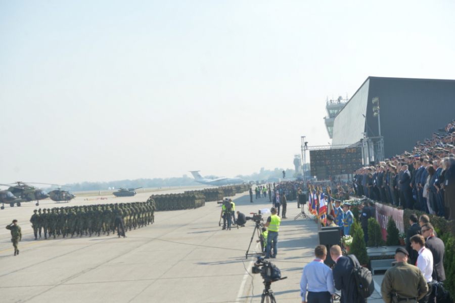 Na aerodromu u Batajnici izveden je prikaz oklopnih jedinca Vojske Srbije i raketne artiljerije.