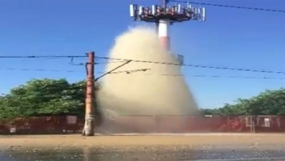 Gejzir je osim vode, bacao šoder i pesak, pa je oštećeno nekoliko automobila na kojima je pričinjena velika materijalna šteta, pišu Novosti.