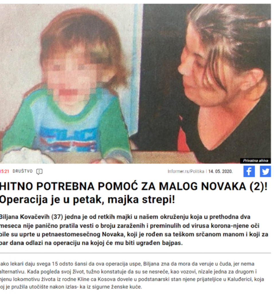 Glumi majku bolesnog deteta, zloupotrebljava podatke, samo da bi došla do novca!