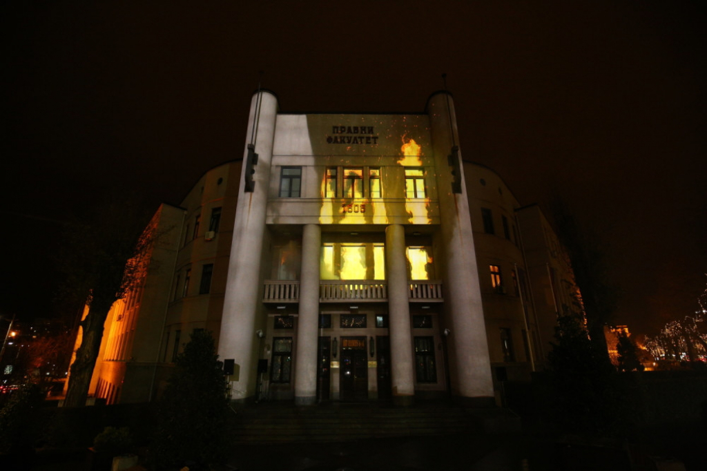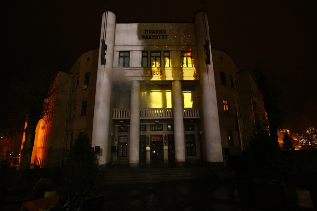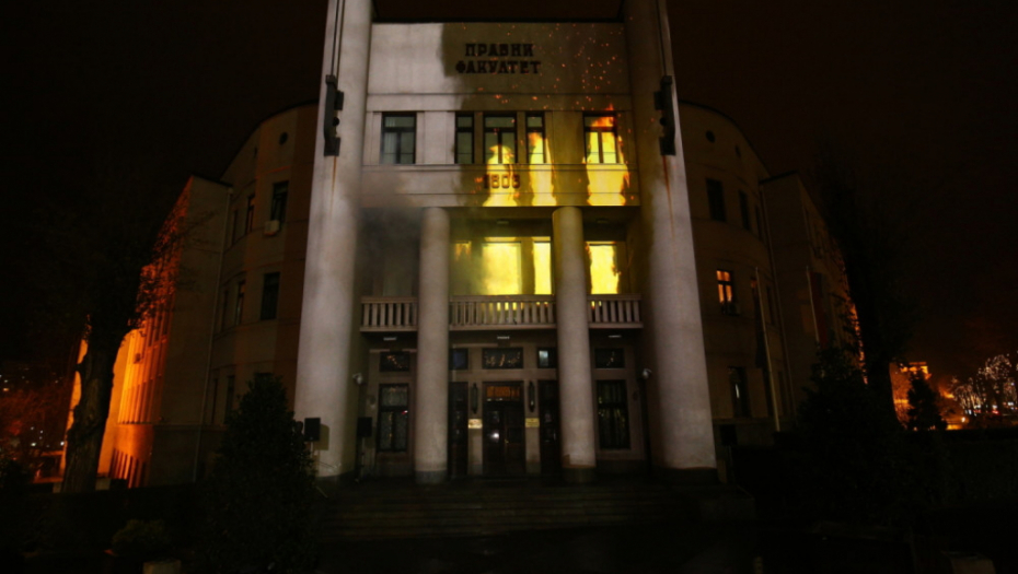 Građani su u neverici posmatrali "požar" na jednoj od najprepoznatljivijih zgrada u centru Beograda – na Pravnom fakultetu.