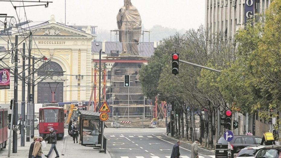 Na Savskom trgu u Beogradu juče završeno postavljanje veličanstvenog spomenika Stefanu Nemanji, osnivaču srpske srednjovekovne države.