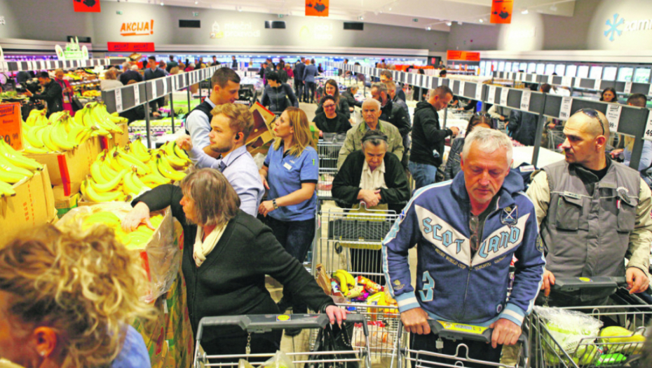 Pred ulaznim vratima hipermarketa bio je „stampedo“, jedna starija gospođa pala je na asfalt. Iako su građani koji su se našli u njenoj blizini želeli da pozovu Hitnu pomoć, ona nije htela, jer se bojala da ne izgubi svoj red na ulazu.