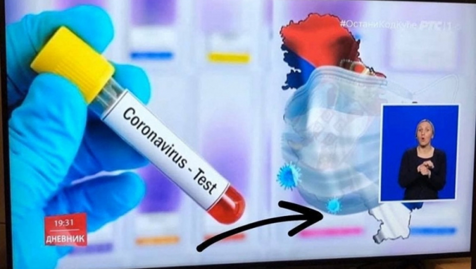 Naime, u Dnevniku 2, koji se emituje u udarnom terminu u 19:31, reprodukovan je prilog o situaciji sa koronavirusom u Srbiji. Tom prilikom kao ilustracija korišćena je karta Srbije prekrivena hiruškom maskom.