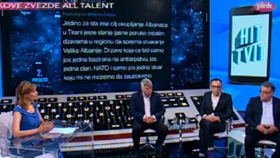 Sinoćnji gosti emisije "Hit tvit" bili su Miroslav Lazanski, vojno-politički komentator "Politike", Nebojša Čović, predsednik Košarkaškog kluba Crvena Zvezda i Branko Klanščak aktivni tviteraš.