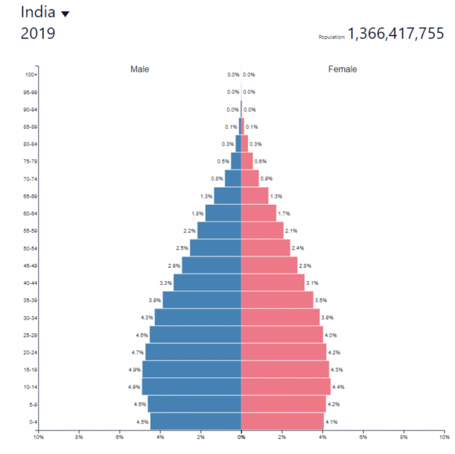 Druga najmnogoljudnija zemlja na svetu, Indija, do sada je zabeležila samo 16,116 slučajeva oboljevanja uz 519 smrnih ishoda. Na nizak broj slučajava Covid-19 dobrim delom je uticala prosečna starost koja ovde iznosi manje od 27 godina, skoro 10 godina manje nego u Kini. Iako se graniči sa Kinom, broj slučajeva je nizak i zahvaljujući strogim merama koje su obe zemlje sprovele, ali i zatvaranjem kineskih granica.