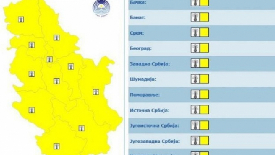 Zbog nešto više temperature nego prethodnih dana na snazi je žuti meteoalarm u celoj Srbiji.