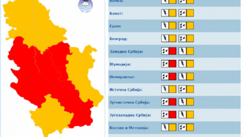 "U narednih sat vremena na zapadu, jugozapadu i u centralnoj Srbiji lokalno se očekuju obilni plјuskovi sa grmlјavinom i pojavom grada (od 20 do 40 mm kiše za kratak vremenski period, ponegde i više). Takođe, na širem području Beograda i južnim i jugoistočnim obroncima Fruške Gore jaki grmlјavinski procesi uslovlјavaće obilnije padavine i pojavu grada", upozoreno je za period od 13.16 do 14.16 sati.