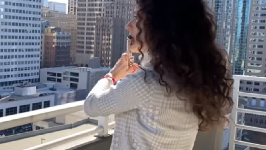 "Pukni zoro! Ostani kod kuće! Za sve medicinske radnike u prvim redovima! U ovome smo zajedno! Večeras u osam!", napisala je nedavno na Fejsbuku Marija Spasić Komlenović i u znak zahvalnosti borcima protiv COVID-19 odsvirala "Pukni, zoro".
