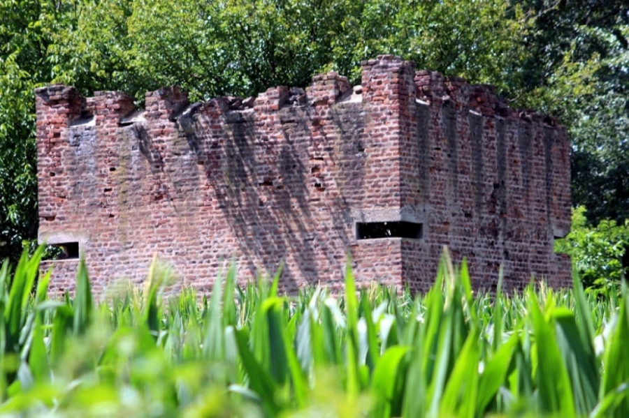 Jedan bunker je na ivici njive zasejane kukuruzom, oko njega visoko gusto šiblje, divlja ostruga, šipak i korov, ulaz okrenut prema pruzi i mostu, prekriven lijanama.