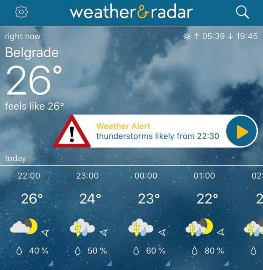 Takođe, najavljena je i oluja u Beogradu za 22.30 časova.