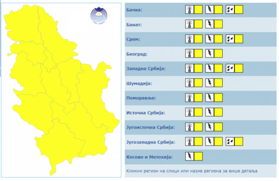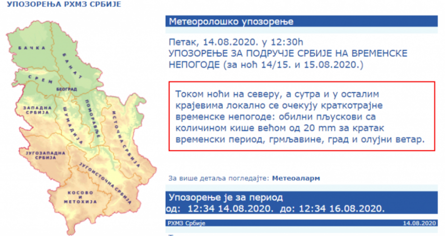 RHMZ je upozorio i na nepogode koje će važiti i za subotu 16. avgust.