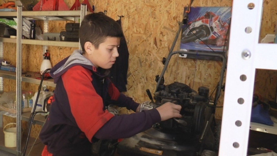 "Oduvek su me zanimale te popravke i alat. Radionici sam pravio sam, ali za nabavku alata su mi pomogli roditelji. Za sada sam naučio da popravim osnovne stvari na autu, kao što su mali servis i popravku sitnih kvarova elektronike, motorne mašine za dvorište. Trenutno radim na popravci motorne kosačice na kojoj imaju tri krvara, kabal od svećice koje mora hitno da se reši jer može dovesti do toga da se zapala kosačica kao i crevo od vazduha, jer kabal koji ide od svećice ka motoru je glavni izvor električne energije", rekao je ovaj sposobni dečak.