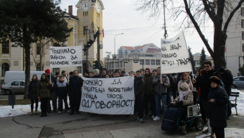 - Moj mlađi brat brutalno je izboden od strane dečaka koji ima 15 godina. Dobio je ubode u glavu, nogu stomak... Za ovakav monstruzni zločin koji se vodi kao pokušaj ubistva kaznene mere su od šest meseci do četiri godine. Uz uzorno vladanje počinilac može da bude pušten za dve, tri godine a moj brat nikada više neće moći da hoda kao što je hodao. Izgubio je bubreg, izgubio je slezinu. Nosi jedan ogroman ožiljak od noža na licu. Jel to vredno šest meseci do četiri godine? - upitao je Petar Jovanović, stariji brat izbodenog mladića koji je inicijator protesta i pokretač inicijative za izmenu zakona.