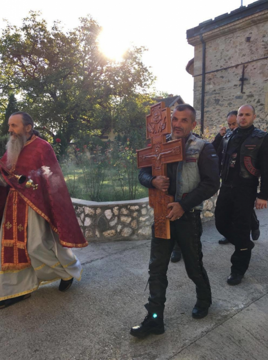 Članovi Noćnih vukova iz odeljenja Srbija i Nomad su uz poštovanje pravoslavnih običaja krst na motorima prezli od manastira Rukumija do manastira Studenica, tačnije do isposnice Svetog Save gde će krst i ostati.
