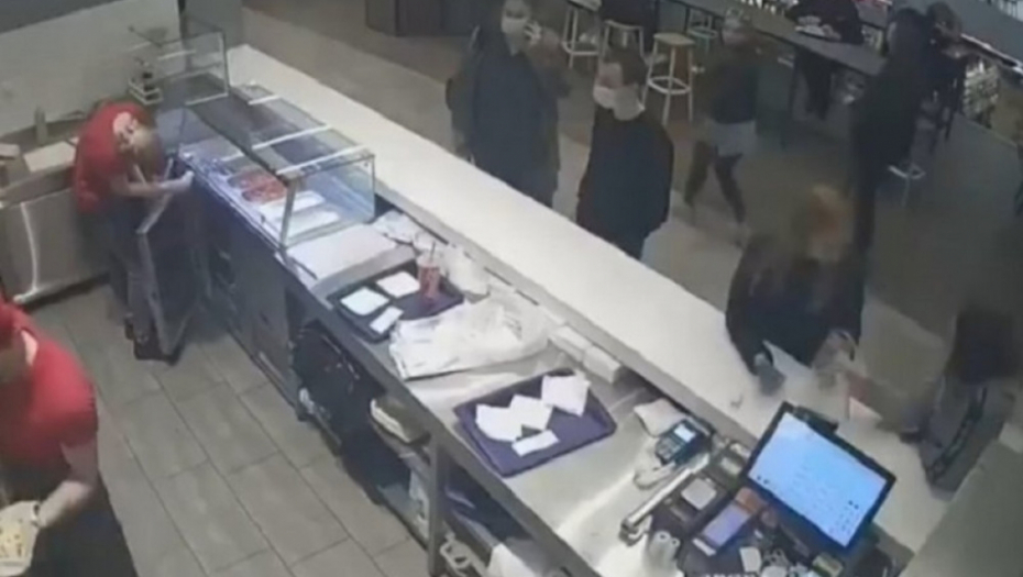 Ženska osoba je zagrlila teglu i okrenula leđa radnicima, kako ne bi primetili šta joj je u rukama, praveći se da razgovara telefonom. Čak je u jednom trenutku pokušala da vrati teglu, ali joj je druga devojka gurnula ruku u maniru "nećeš vraćati", da bi potom nonšalantno likovala naslonjena na pult.