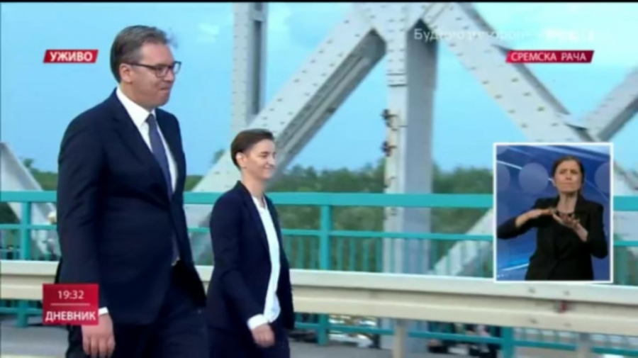 Predviđeno je da se na mostu na Sremskoj Rači sretnu predsednik Srbije Aleksandar Vučić i srpski član Predsedništva BiH Milorad Dodik, a dočekaće ih patrijarh srpski Irinej.