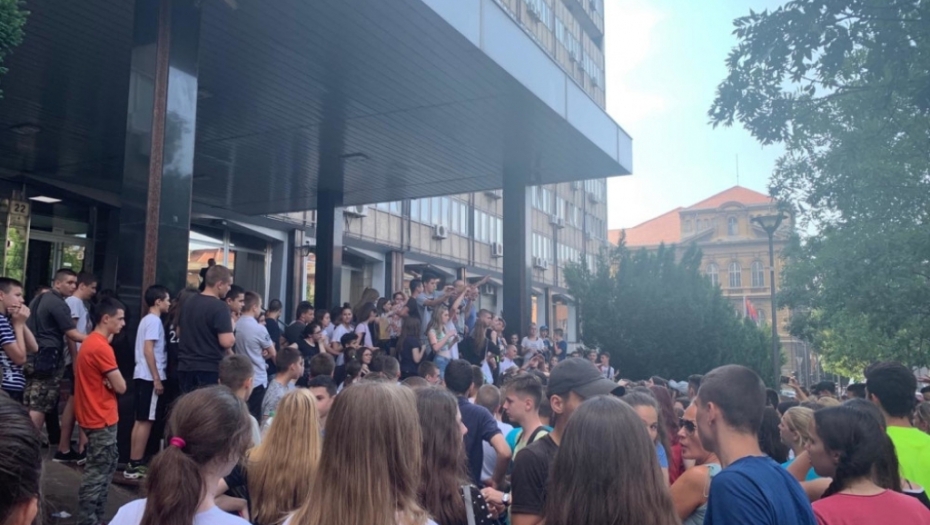 Osmaci koji si se okupili, gađali su zgradu Ministarstva prosvete jajima i uzvikivali "Nećemo prijemni".
