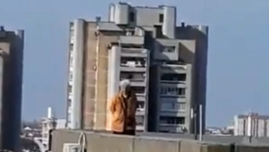 Jedan deka, koji očigledno ima više od 65 godina, izašao je iz svog stana da bi prošetao - ni manje ni više - nego krovom zgrade.
