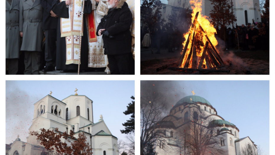 Njegova Svetost Patrijarh SPC Irinej uz prisustvo sveštenstva i okupljenih vernika prisustvovao je danas kasno popodne ispred hrama Svetog Save tradicionalnom paljenju Badnjaka.