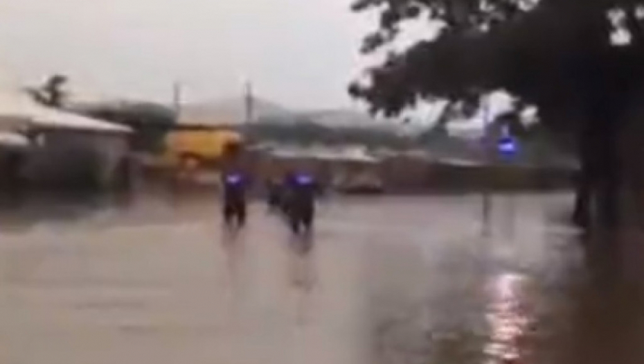 Interventna jedinica policije spasava ljude iz poplave koja je nastala u Beogradu usled jakog nevremena.
