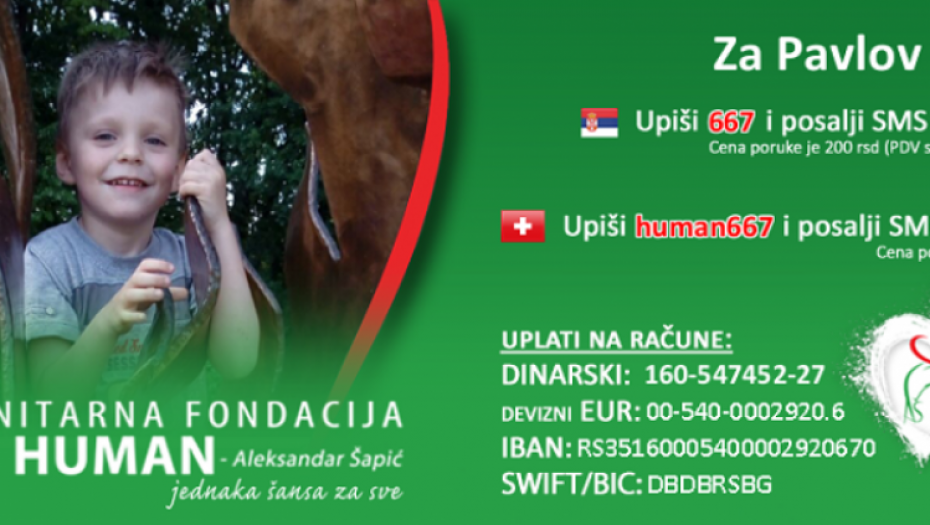 Slanjem SMS poruke iz Švajcarske: Upišimo human667 i pošaljimo SMS na 455