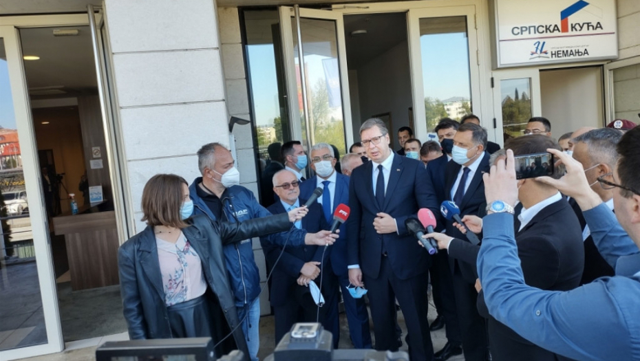 Vučića je dočekao direktor "Srpske kuće" Emilo Labudović , a potom su zajedno obišli sedište institucija i organizacija koje su osnovane radi očuvanja kulturnog i nacionalnog identiteta srpskog naroda u Crnoj Gori, a za čiju izgradnju je Vlada Srbije izdvojila 3,4 miliona evra.