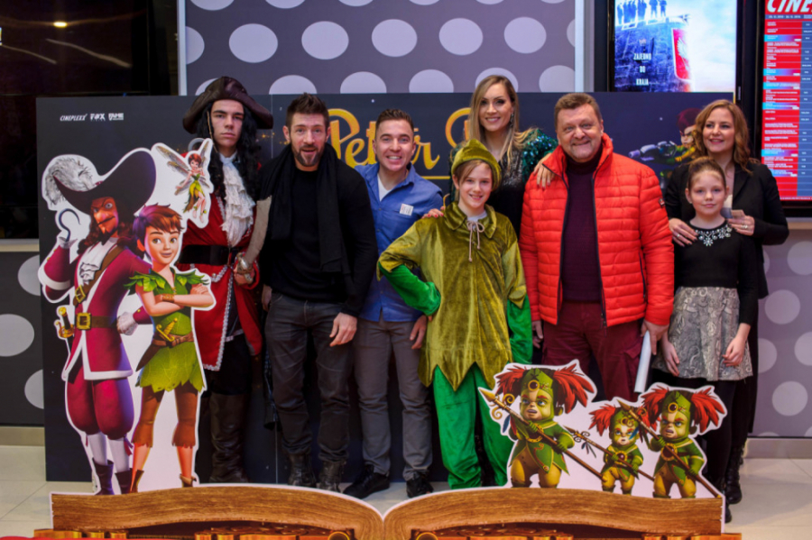 Prepuna sala bioskopa oduševljeno je pozdravila veliku ekipu filma nakon premijeri: Đorđa Stojkovića, koji je dao glas upravo Petru Panu, Milana Gromilića u ulozi Kapetana Kuke i Jelenu Gavrilović u ulozi vile Zvončice. Pridružio im se Miroljub Turalija u ulozi pomoćnika Smija, Nikola Šurbanović u ulozi novog lika Zlirona, Dragan Vujić Vujke u ulozi Plavobradog. Džon i Majkl su talentovani mladi glumci Dimitrije Nikolić i Sava Stanisavljević.