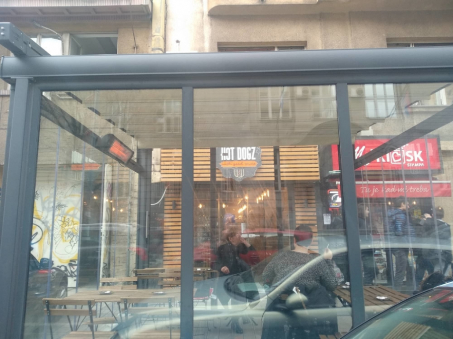 Bašta ovog lokala brze hrane zauzela je nekoliko parking mesta ispred porodilišta uprkos obaveštenju o kojem smo nekoliko redova iznad govorili.