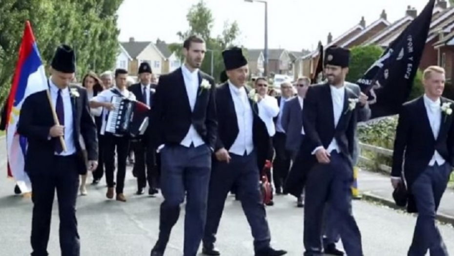 Pršti četnička svadba u Engleskoj, vijore se srpske zastave, svira harmonika i sijaju kokarde