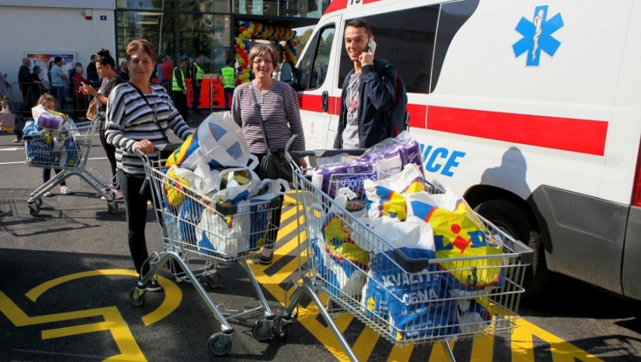 Potrošači su juče u proseku 40 minuta čekali da uđu u radnje i pazare mahom ono za šta su obavešteni da je na akciji. Hitna pomoć je dežurala na samom parkingu uz objekat, a kako nezvanično saznajemo, lekari te službe reagovali su juče nekoliko puta, te su kupcima koji su kolabirali čekajući u redovima ukazivali zdravstvenu pomoć.