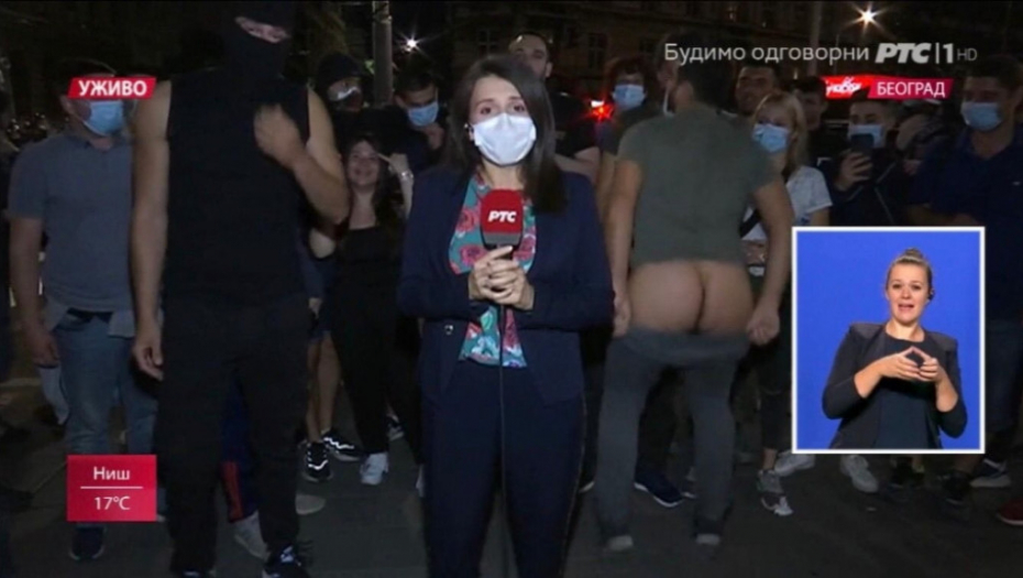Naime na pomentom snimku koji je šokirao gledaoce vidi se velika gužva i novinarka koja stoji ispred nje. Video prilog ne bi bio nimalo čudan da jedan od demonstranata ovaj kadar nije iskoristio kako bi celoj naciji pokazao svoju golu zadjicu.