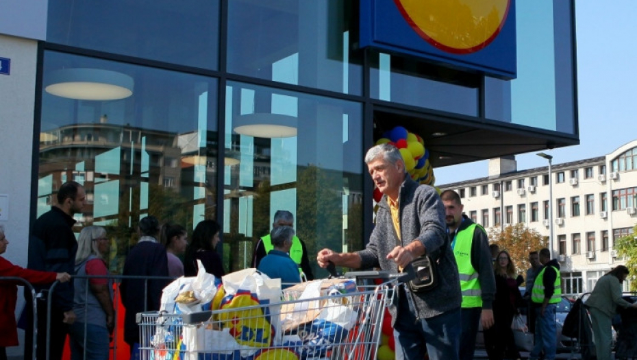 Slaviša se kune u „časnu seljačku reč“ da ajvar iz Lidla mnogo dobro ide uz piliće i banane koje je kupio na otvaranju ovog hipermarketa u Leskovcu.