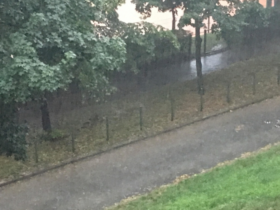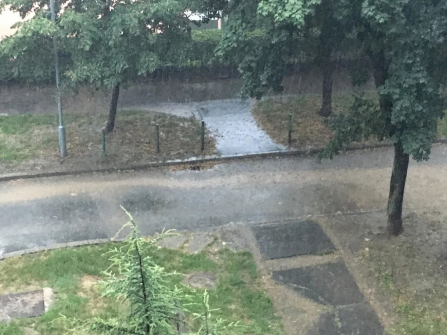 Kiša već pola sata pada bez prestanka, praćena jakim olujnim vetrom i gradom veličine lešnika. Građani se panično sklanjaju sa ulicama, čuvajući glave od kapi i leda koje su im se sručile iznenadno.