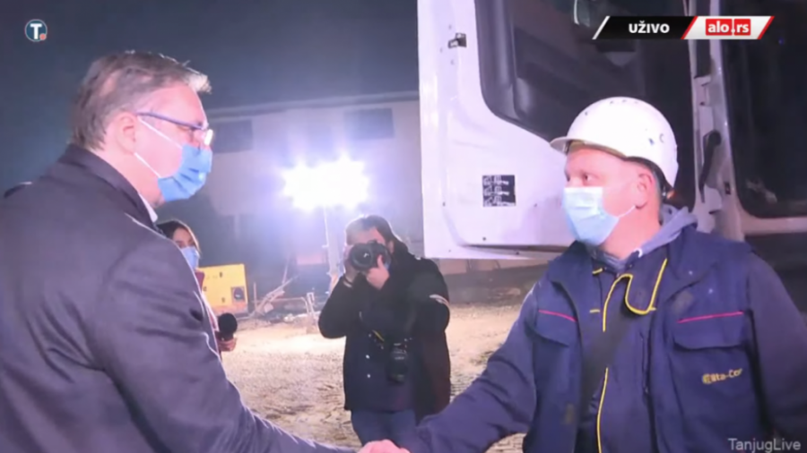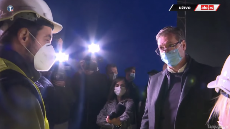 Predsednik Srbije Aleksandar Vučić, odlučio je da zbog nestabilne epidemiološke situacije obiđe radnike u trećoj smeni na izgradnji kovid bolnice na Vojnom kompleksu "Zemun ekonomija".