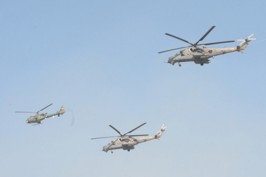 Inače, na aerodromu u Batajnici postavljena su tri helikoptera Mi-17 i jedan "Erbasov" H-145M, kao i tenk T-72.