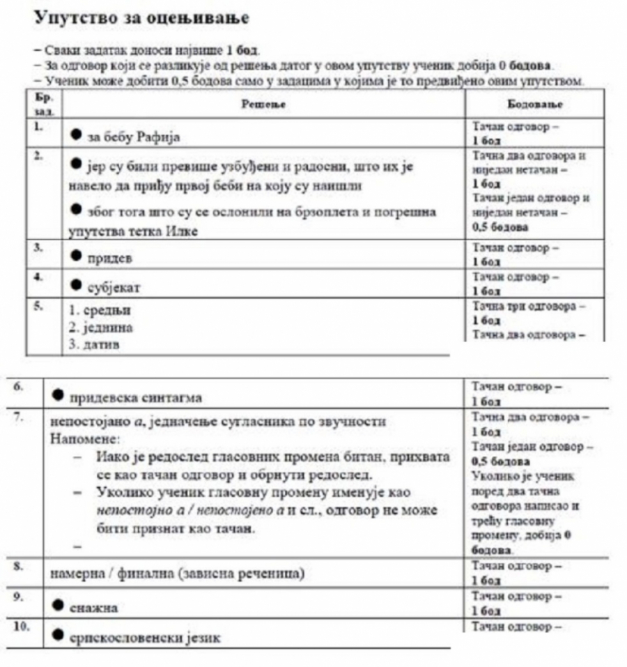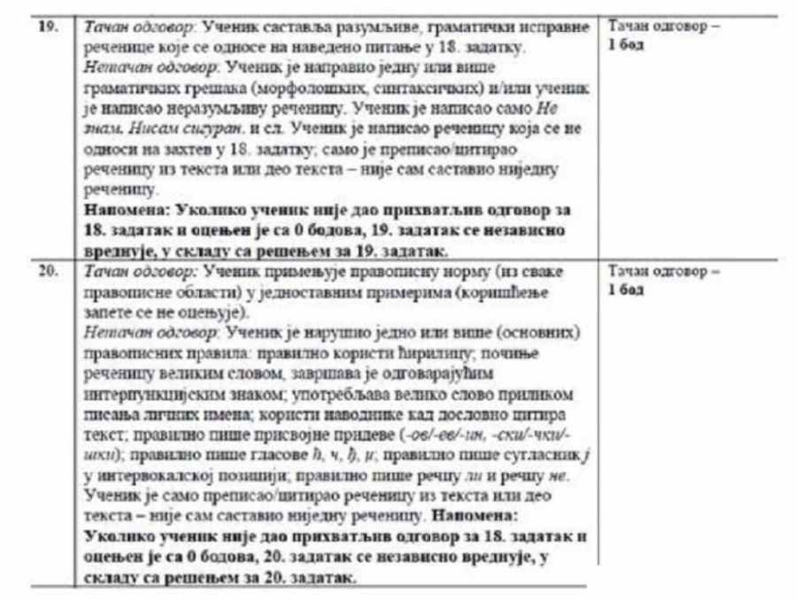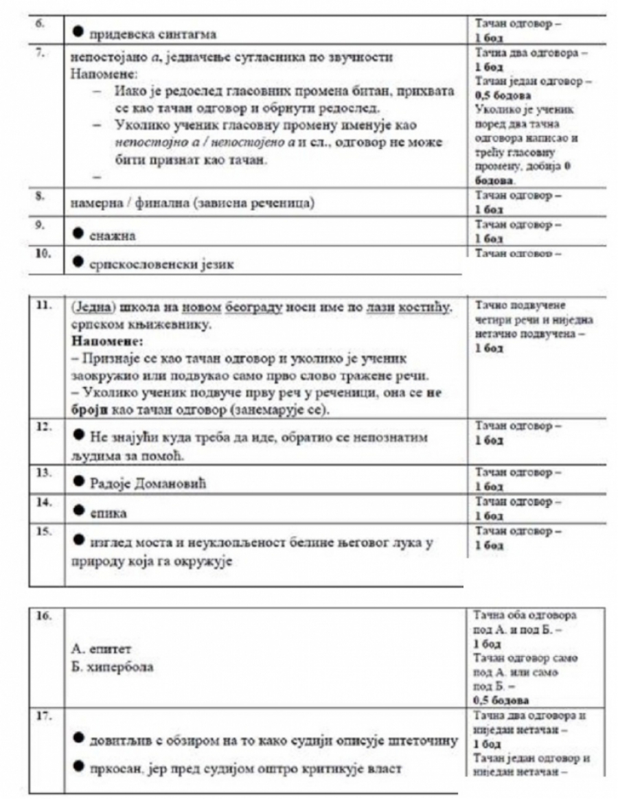 - U principu nije bilo teško. Dvomila sam se oko nekih stvari sa kojima do sada nisam imala problema, konkretno u zadatku u kome je trebalo odrediti vrstu zavisne rečenice. Gramatike je najviše bilo iz petog i šestog razreda, mada je više pitanja bilo iz književnosti. Nekoliko zadataka se odnosilo na analizu književnih dela „Jazavac pred sudom“, „Most na Žepi“ i „Očiju tvojih da nije“. Mislim da sam tačno odgovorila i na njih, mada čujem da se moji pojedini drugovi žale na taj deo testa - ispričala je za "Blic" Užičanka U. K.